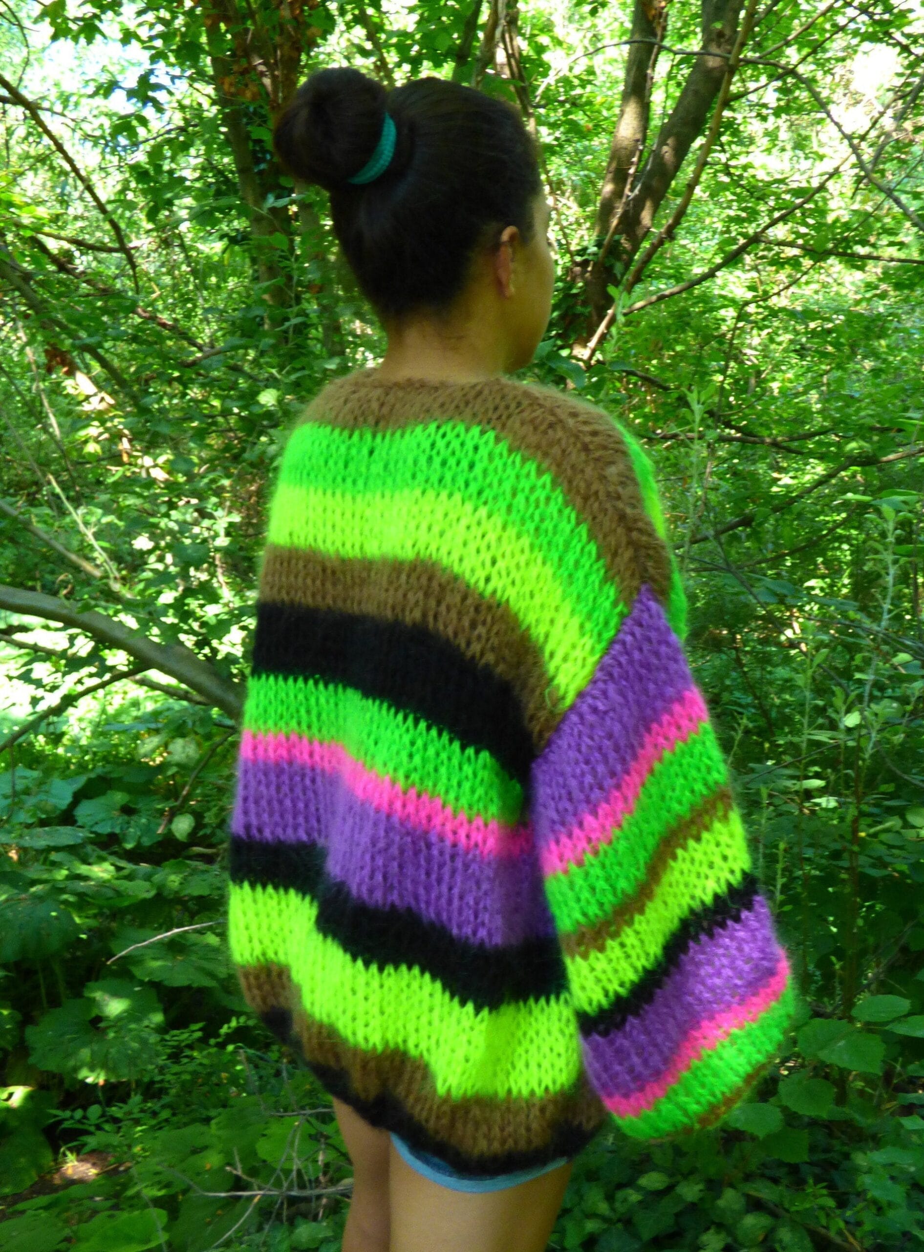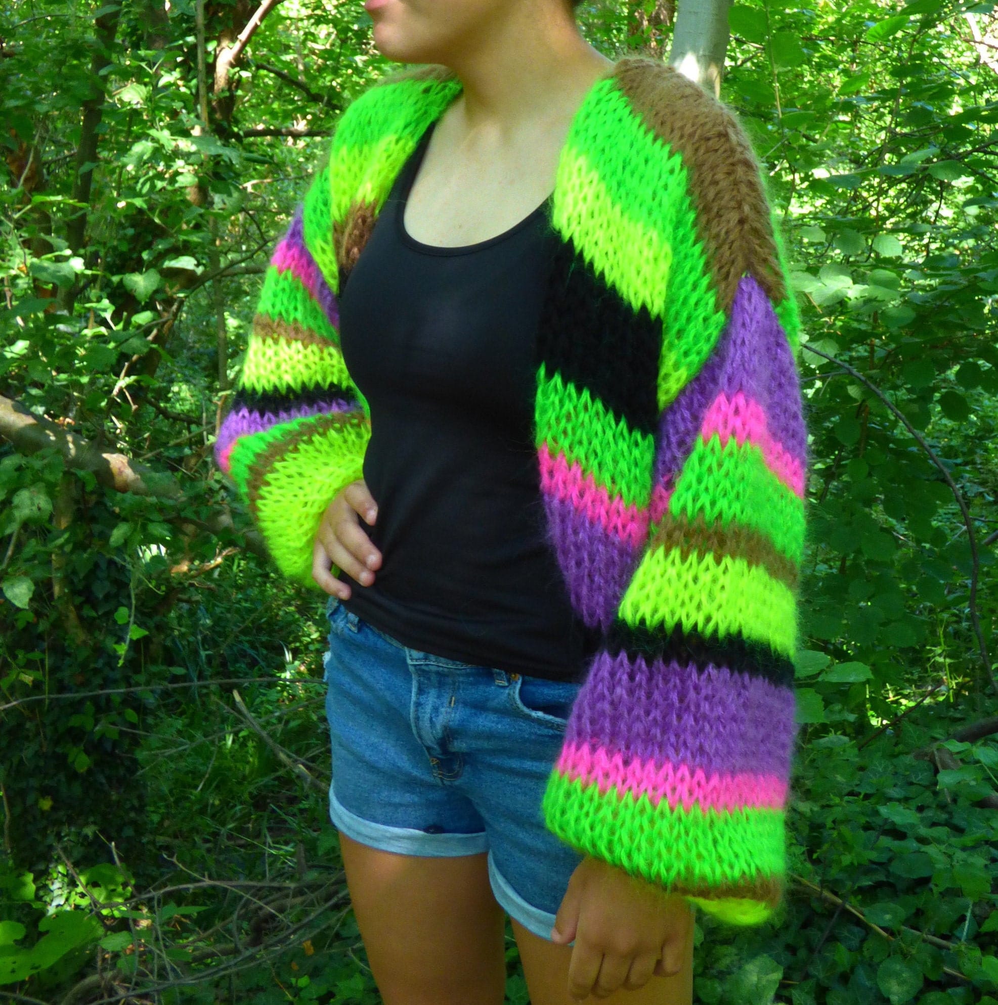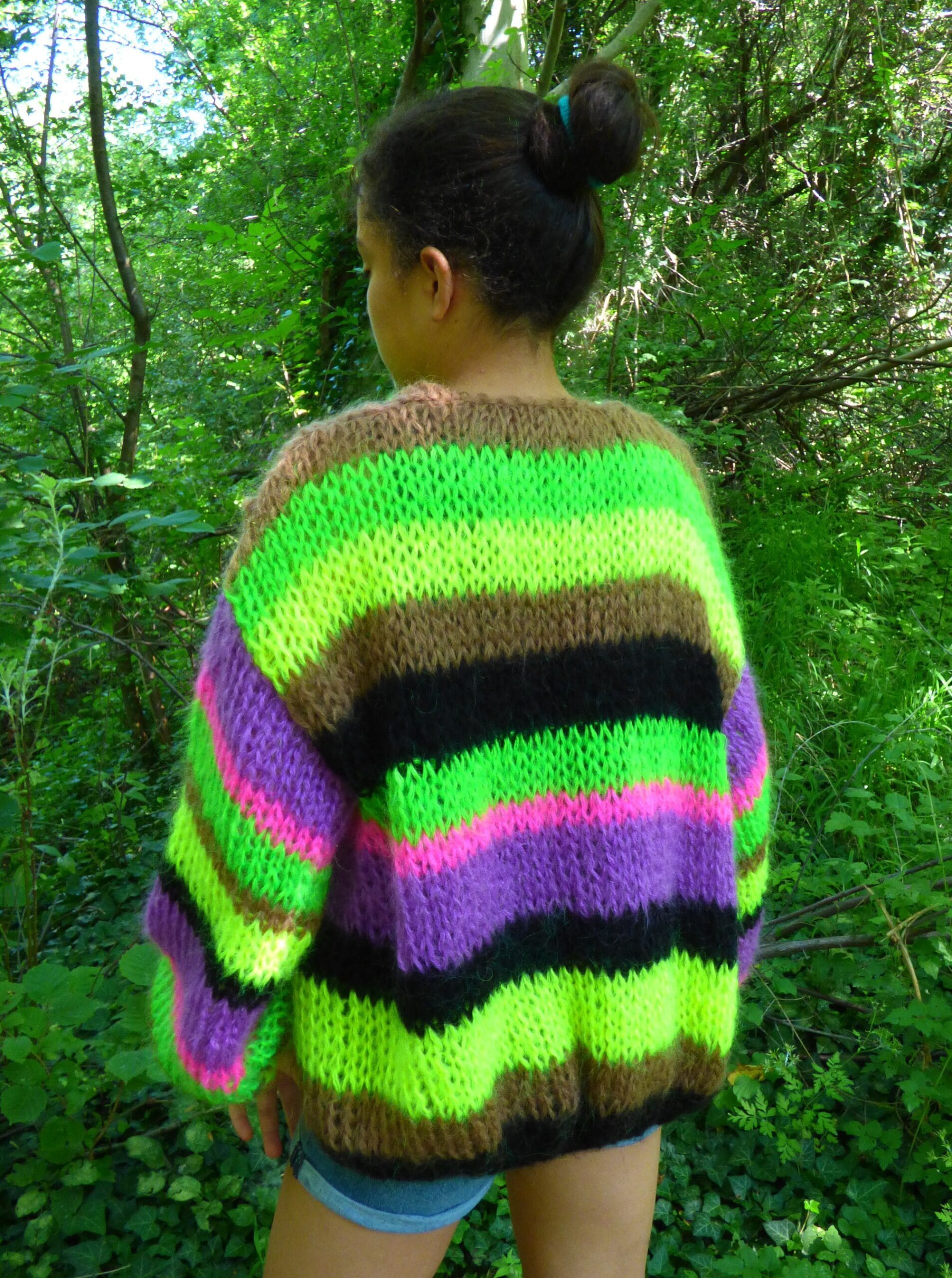 Add color and comfort to your wardrobe with knitted multi-colored mohair cardigan Neon Light – handmade, which emphasizes individuality and a sense of comfort.