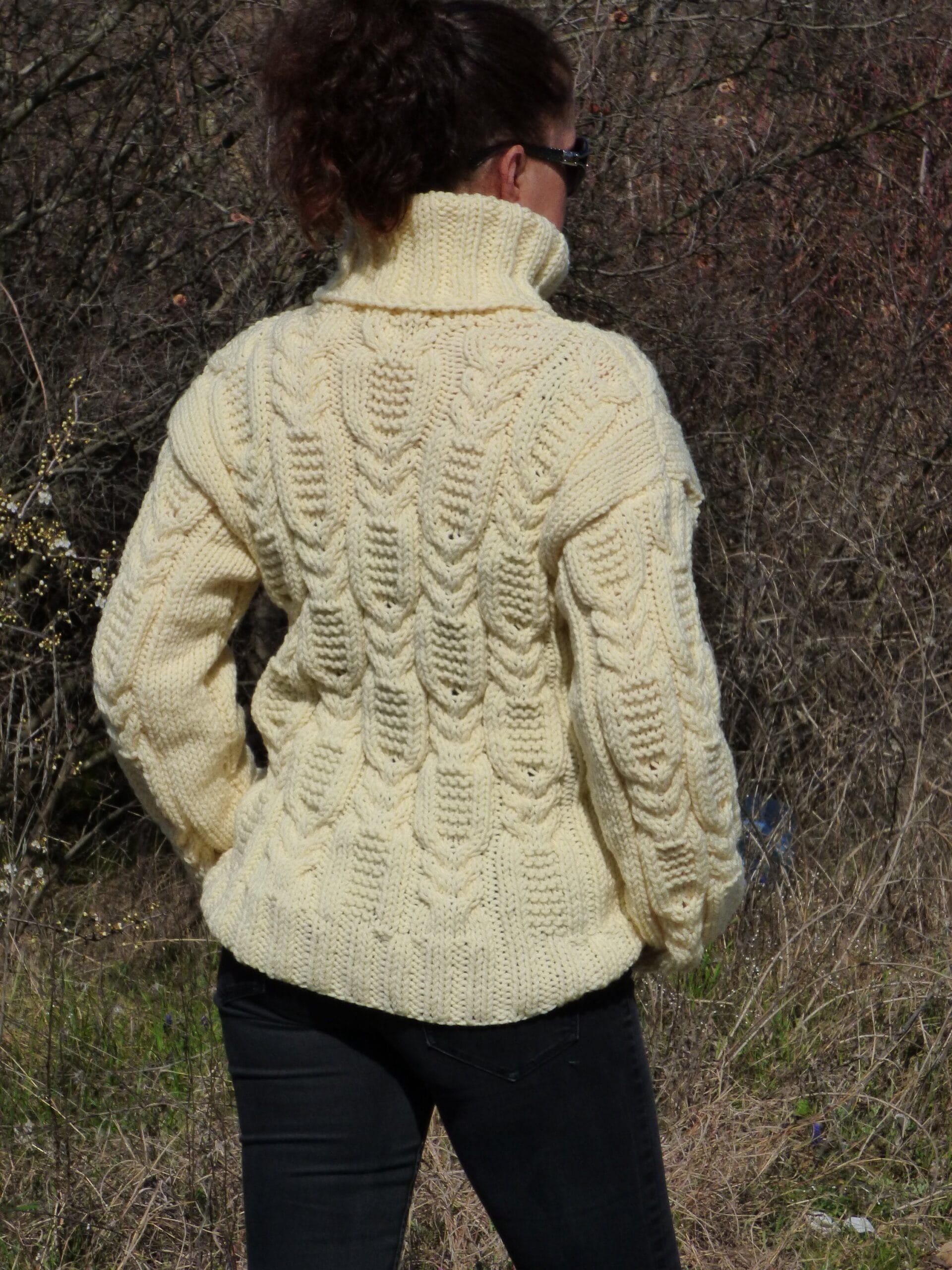 Вталени ръкави и нежни релефни шарки по гърдите и раменете подчертават занаятчийския почерк и добавят елегантност и стил .
